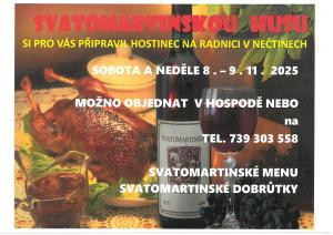 Srdečně zveme všechny na víkendové martinské menu a dobroty, které se budou podávat v naší hospodě 8. a 9. listopadu 2025. Přijďte si užít atmosféru a ochutnat speciální pokrmy a dezerty.